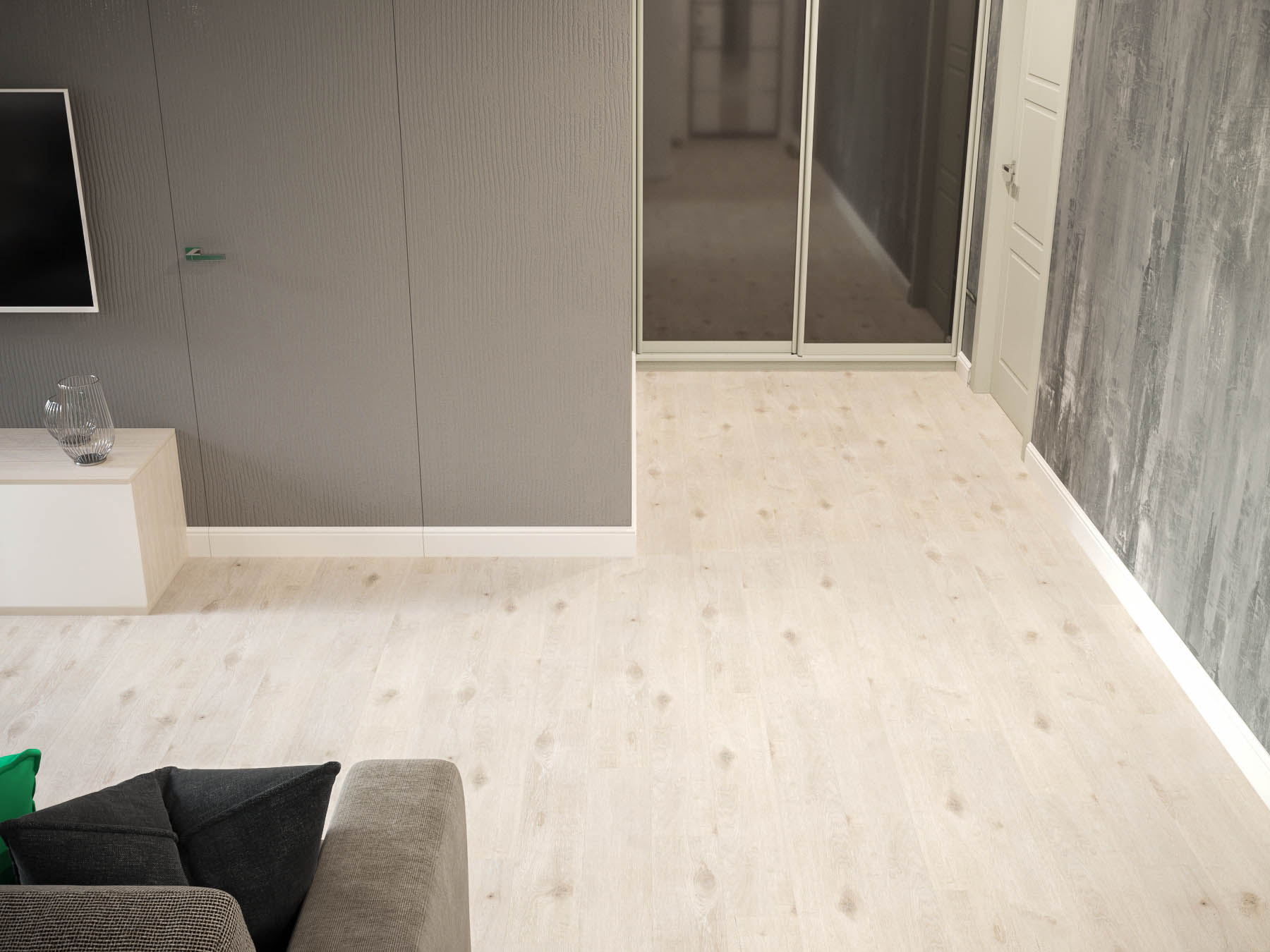 Кварцвиниловый ламинат не требует особой подготовки основания. Скроет неровности, трещины и даже небольшой перепад высот. Его можно укладывать на готовую стяжку, старый ламинат или ковролин.