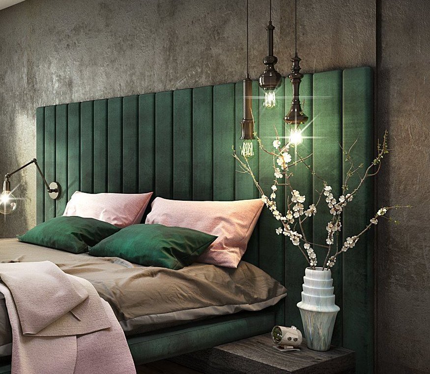 Изголовья классических кроватей обычно выполняются в том же цвете, что и обивка. Такой предмет мебели, по общему признанию, является «связным», но некоторым он покажется скучным — независимо от того, имеет он пастельный или контрастный цвет, например бирюзовый, индиго, темно-синий или фуксия. В такой ситуации можно выбрать мягкие панели над кроватью, которые будут интересным дополнением кровати, и в то же время выделятся из всего интерьера.