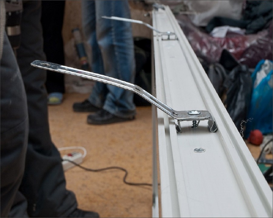 В выбранных местах устанавливаем пластины, защелкивая их крепления в пазах профиля. Пластины отгибаем под углом таким образом, чтобы при установке рамы в проем они прижимались к откосам. |