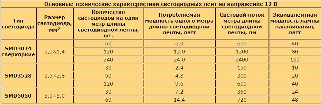 Электрическая мощность светодиодных лент