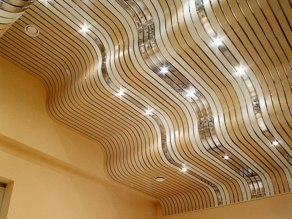 - Заново измеряют потолок. При наличии незначительных погрешностей их устраняют, изменяя величину щелей между ламелями. Панели рекомендуется выравнивать в скрытых местах. Открытые участки должны иметь ровные стыки.