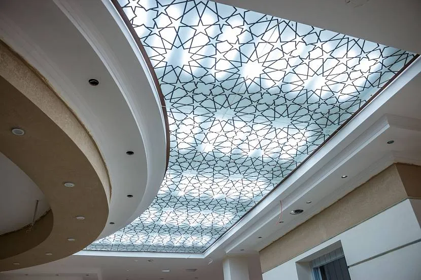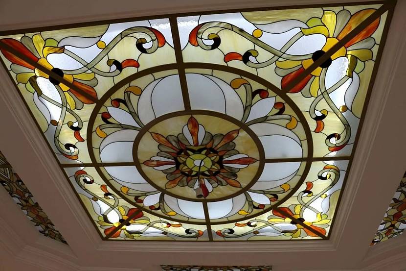 Потолок со стеклянными панелями и подсветкойИсточник prosteklo.com.ua