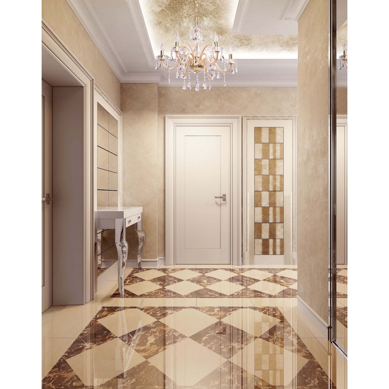 Чтобы оформление прихожей было не просто красивым, а эффектным, необходимо учитывать особенности помещения. С помощью дизайна пола можно визуально изменить не только его размеры, но и характер интерьера.