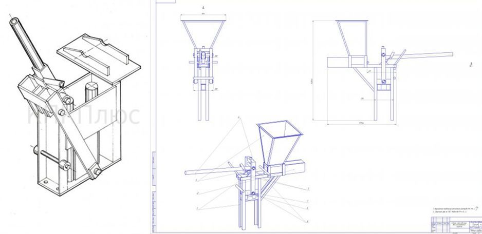 Перед началом работ внимательно изучите чертёж станка и сделайте лекала деталей. Для того чтобы сделать своими руками пресс для кирпичей Лего, понадобится: