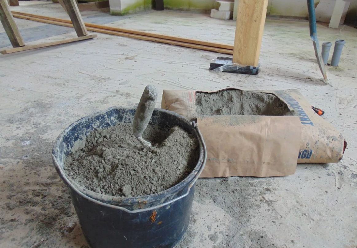 Важно правильно рассчитать пропорции воды и цемента. При сжатии смеси рукой не должна выделяться вода.