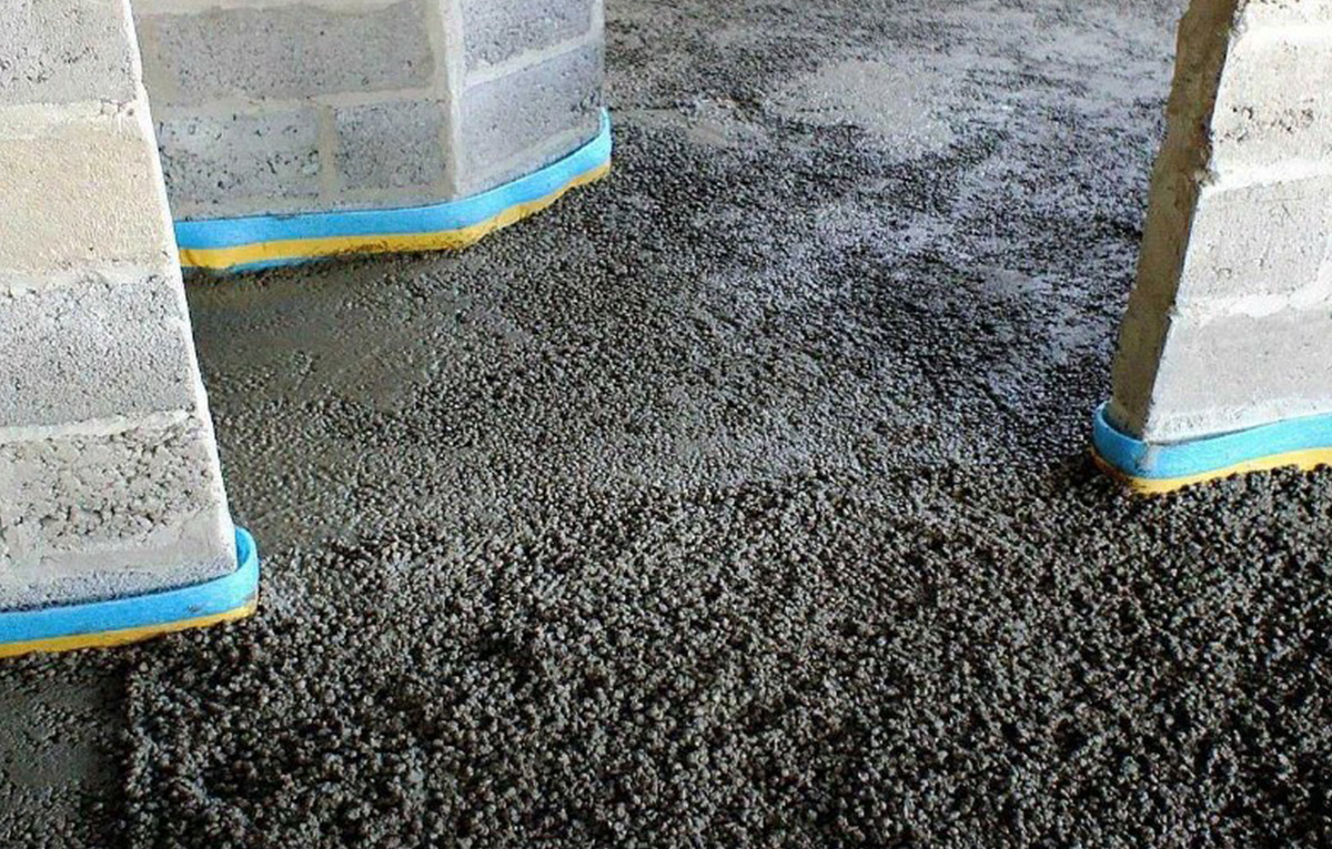 - Заливка керамзита. Последний блок работ. Поверх уплотнителя наливается цементное молочко, что позволит предотвратить проседание просыпки.