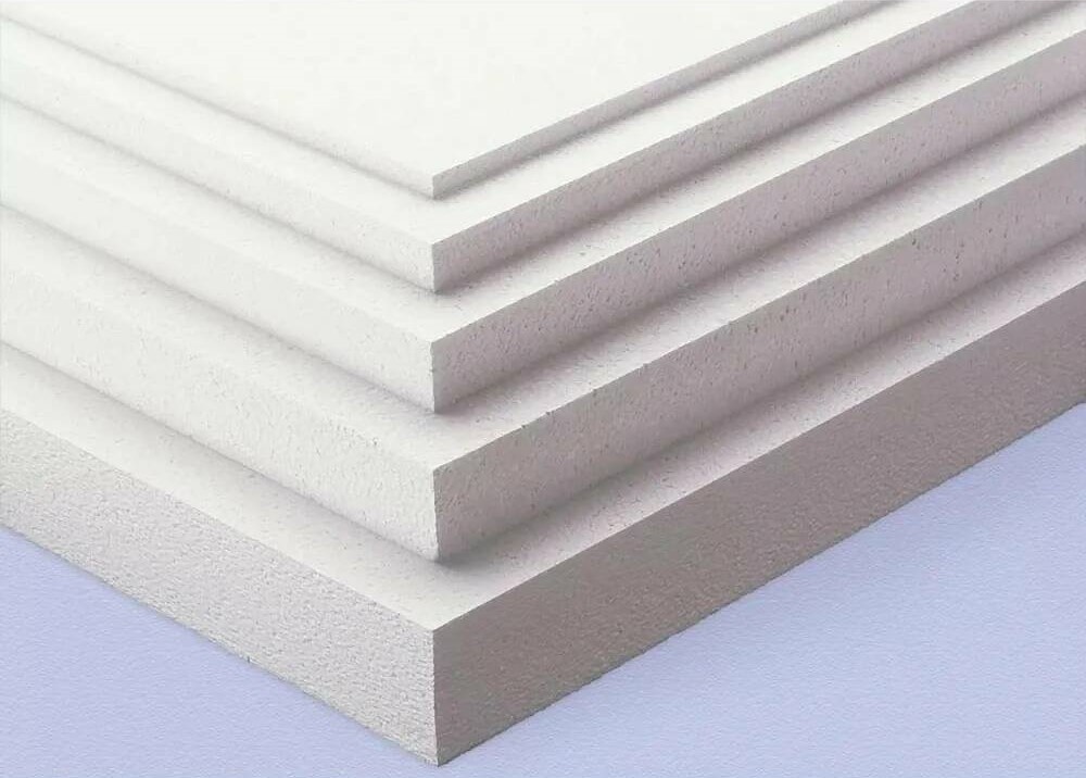 Вспененный полистирол. Используют в форме листа, гранул или как напыление поверхности. Имеет небольшую массу, но довольно крепкий материал. Обладает длительным сроком эксплуатации, влагоустойчивый.
