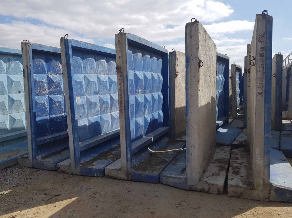 После проведения всех работ с опорами устанавливаются бетонные секции. Задача в том, чтобы продумать, как каждая плита будет подниматься и закладываться в паз. В случае с лёгкими ажурными панелями будет достаточно усилий двух человек, в то время как для поднятия тяжёлых сплошных блоков понадобится кран.