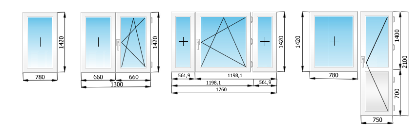 За стандартные размеры окон в зависимости от количества створок принимают: