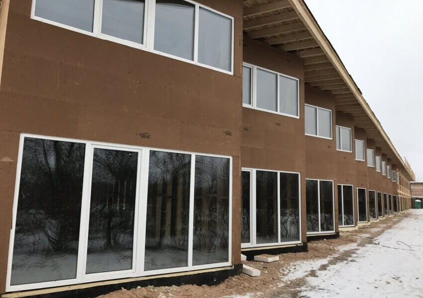 Фасад здания, утепленный древесно-волокнистыми плитами