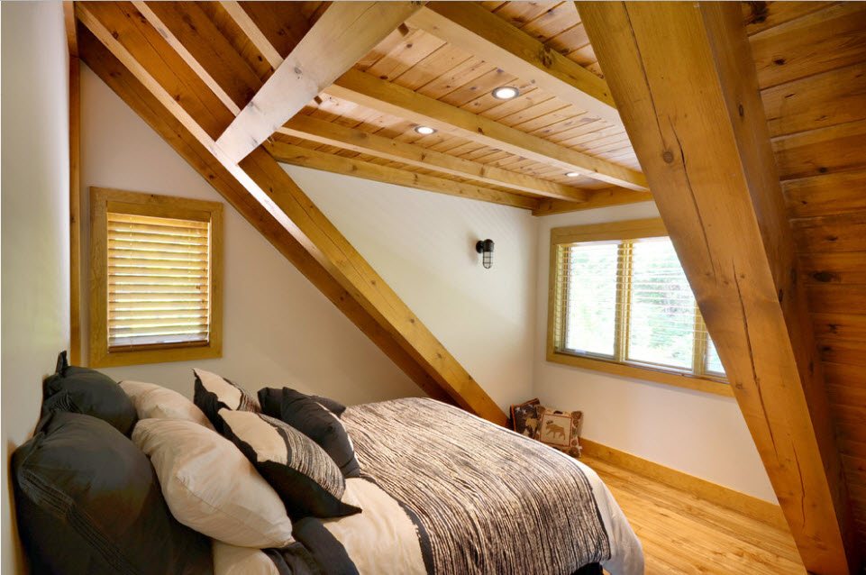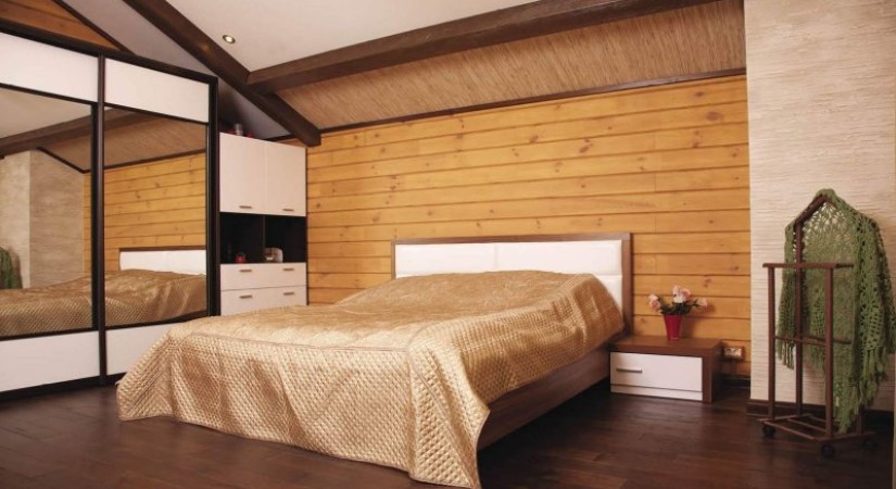 - если вагонка укладывается между балками, ее оттенок и направление облицовки можно менять, таким образом разделяя пространство на зоны;