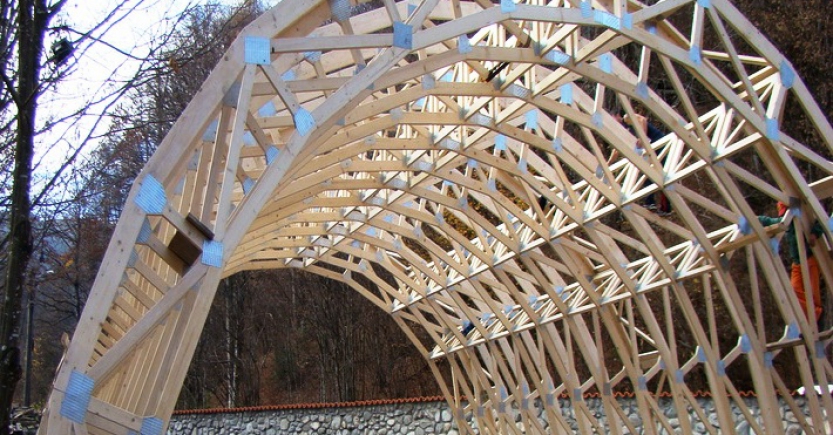 Конструкция каркаса крыши образуется из дуг, арок или ферм, изогнутых соответствующим образом. Они могут выполняться: