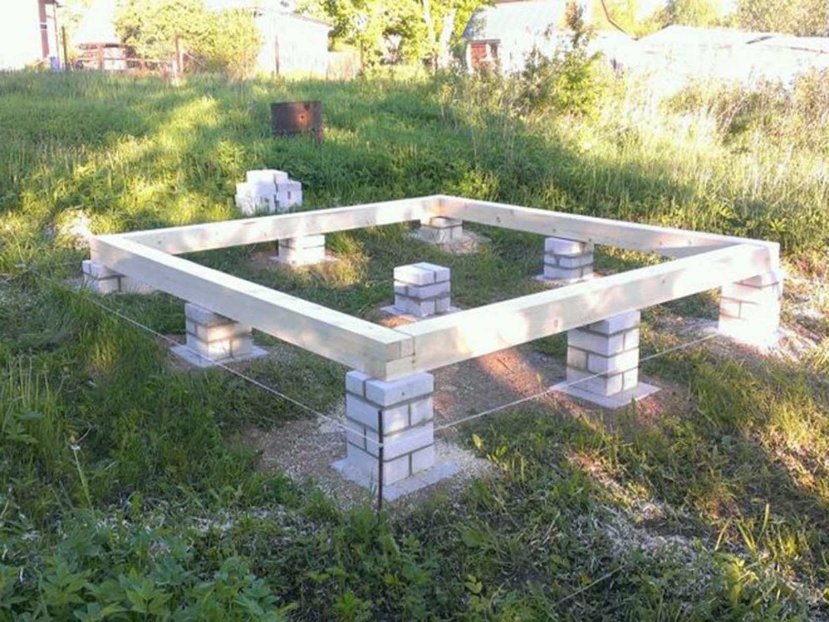 - Выложите в намеченных точках столбчатые фундаменты, как об этом рассказано в предыдущем разделе.
