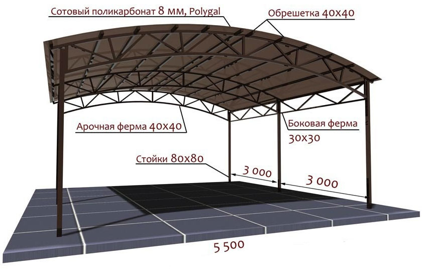Проект отдельно стоящего металлического навеса из профиля
