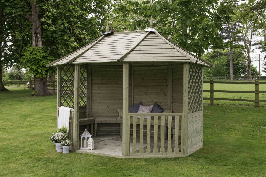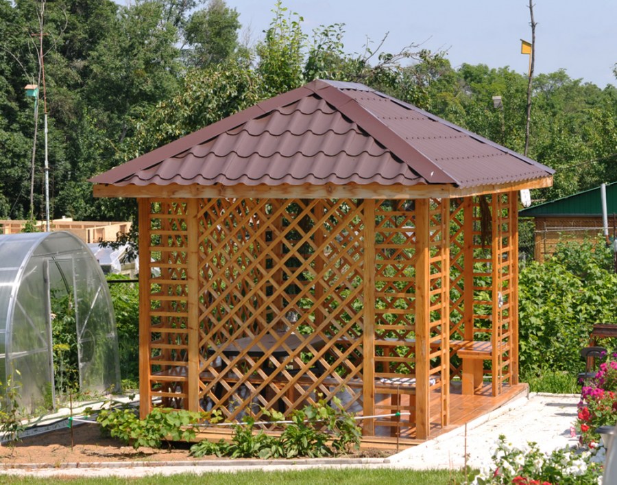 Зная особенности каждого материла, вам не составит труда определиться, чем покрыть беседку из дерева в том или ином случае.