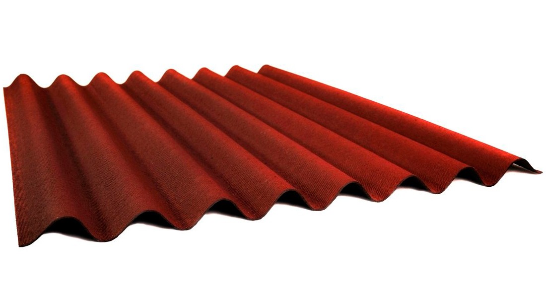 Еще одно название – кровля битумная. По виду напоминает традиционный шифер, но в его составе асбест отсутствует. Листы ондулина достаточно легкие, прочные, в продаже встречаются с различной расцветкой. Стандартные линейные параметры – 2 х 0,95 м при толщине 3 мм.