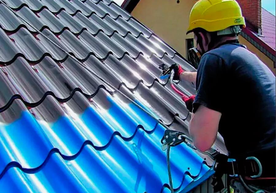 - восстановление эксплуатационных характеристик металлочерепицы, которая уже «отработала» несколько лет, в ходе чего появилась коррозия, трещины или отслоения старой краски.