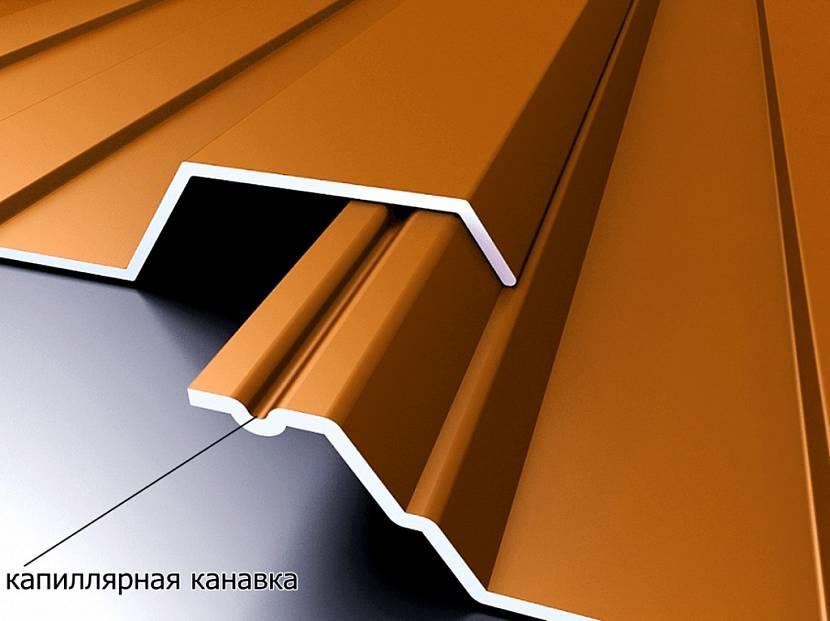 (несущий). Это марки профлиста для кровли. Они характеризуются значительной несущей способностью и предназначаются для устройства крыш. Прочность и надежность обеспечивается толщиной стали до 0,9 мм и увеличенной высотой гофры (может превышать100 мм). Некоторые марки снабжаются дополнительными ребрами жесткости и капиллярными канавками, предотвращающими попадание влаги в подкровельное пространство.