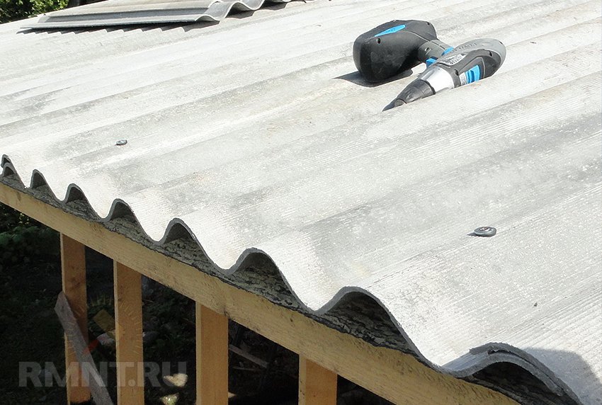 Перед креплением листов в них необходимо просверлить отверстия под гвозди или шурупы, которые должны быть на 2–3 мм больше диаметра крепежа. Это выполняется в шестой и второй волне 8-ми волнового шифера или в пятой и второй волне 7-ми волнового листа, считая от нахлеста. Между гвоздями должно выдерживаться расстояние в 10 см. Прибиваются они по гребням волн. Для герметичности креплений следует использовать резиновые прокладки.