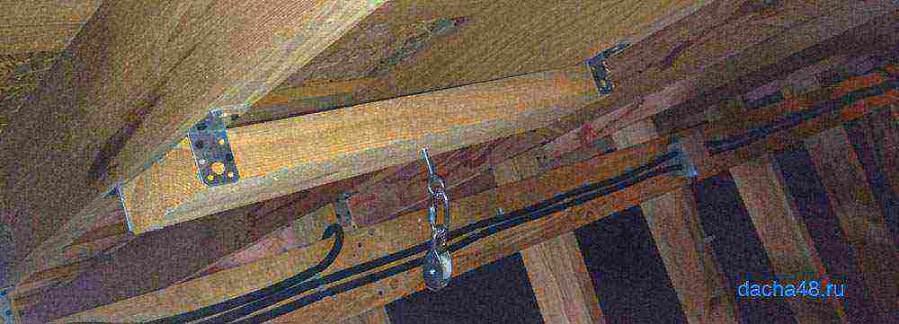 Смысл в том, чтобы стоя внизу потянуть за веревочку и открыть потолочный люк на чердак. Блочки крепятся к стропильной системе в удобных местах. В потолке сверлится отверстие через которое походит шнур.