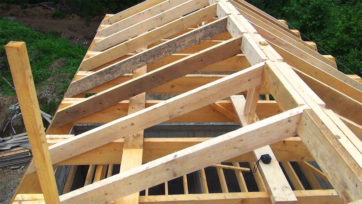Есть много способов сборки и установки стропильной системы. Например, стропила висячей конструкции монтируют с помощью ферм.