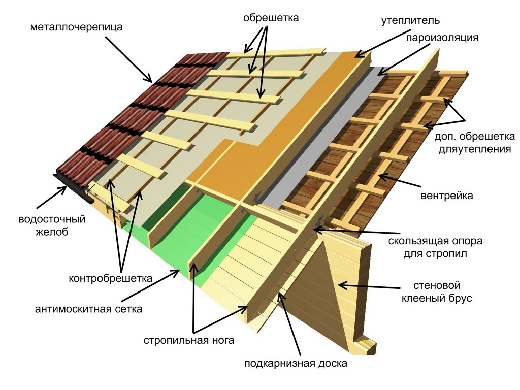 Каждая часть выполняет конкретную задачу и является обязательным элементом конструкции крыши.