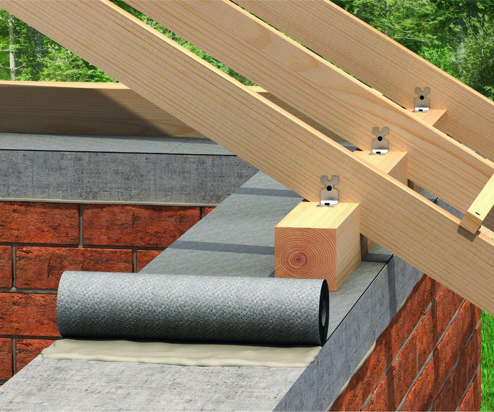 - При повышенном уровне влажности, между стеной и мауэрлатом устанавливается гидроизоляционный слой из рубероида;