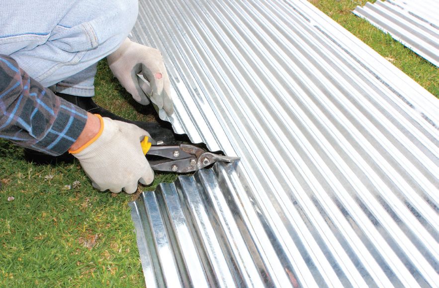 Если полотна профнастила все же не соответствуют размеру кровли или же необходимо сделать вырезы под дымоход, то можно использовать вырубные элекроножницы или электролобзик. Также для разрезания материала применяется циркулярная пила с крупными победитовыми зубьями.
