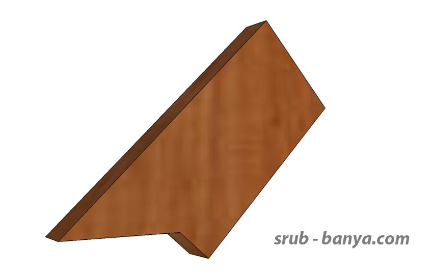 Шаг 2. Далее нужно изготовить две деревянные накладки (форма показана на рисунке). Они прикладываются с одной и с другой стороны двух состыкованных ранее стропильных ног.
