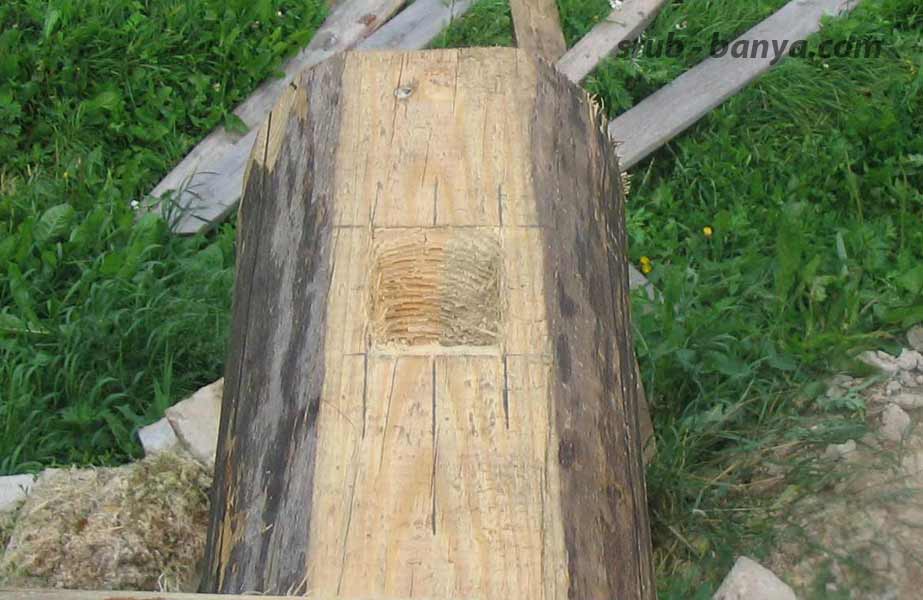 Перед установкой стропил необходимо смонтировать потолочные балки. В верхнем венце сруба необходимо сделать технологическое отверстие, которое называют врубкой – в него будет устанавливаться балка. При этом отверстие не должно быть сквозным, чтобы торец потолочной балки не страдал от действия атмосферных явлений.