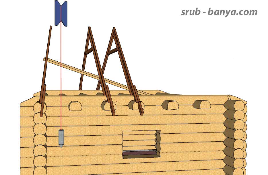 Последний венец сруба следует проверить на горизонтальность, чтобы стропила легли правильно и равномерно передавали нагрузки на конструкцию. Затем размечаются места установки стропил. Если фронтоны сооружения выполнены из бруса или бревен и на них опирается коньковая балка, то технология монтажа стропил отличается от стандартного жесткого крепежа с использованием врубок с шипом и металлических уголков.