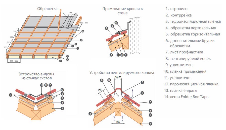 Схема монтажа кровли из профнастила
