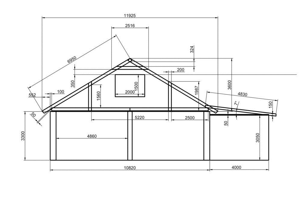 Чертеж двускатной крыши с домом