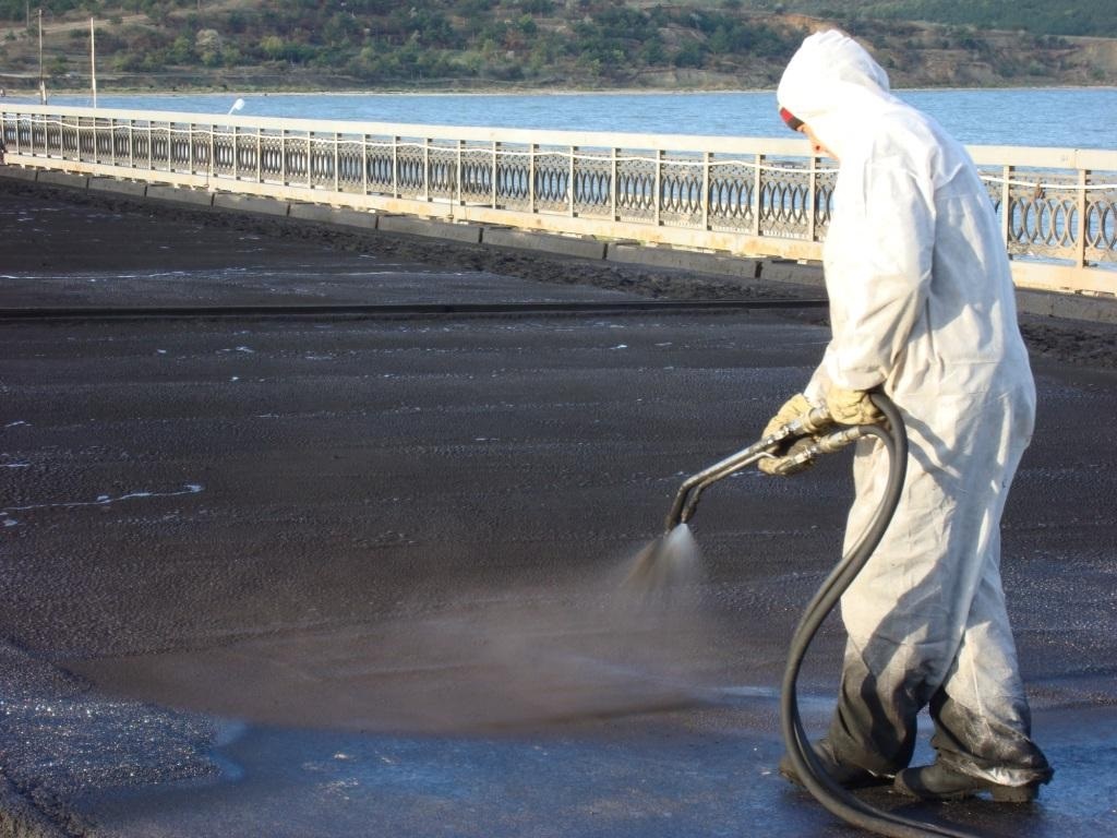 Для напыления кровельного состава на поверхность используется специальное оборудование.