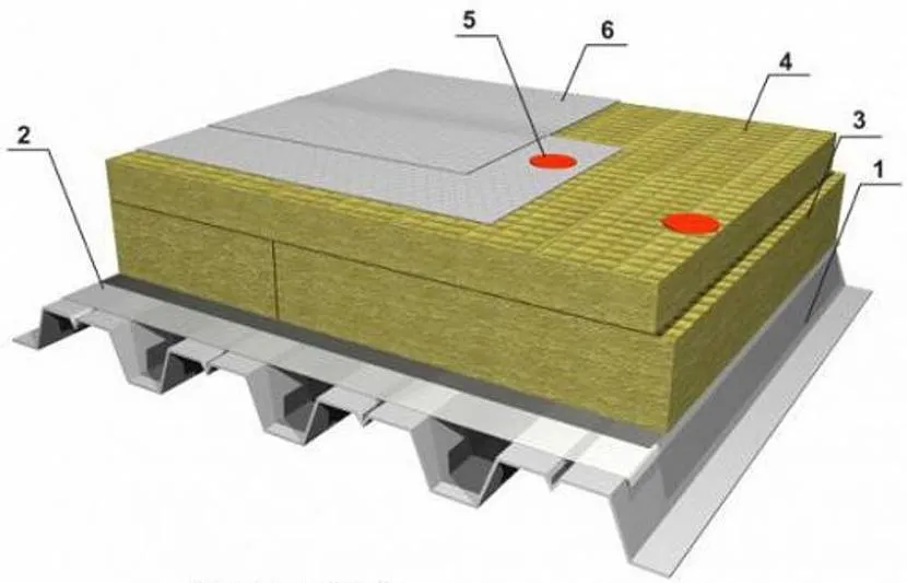 Рисунок 7. Схема классической неэксплуатируемой кровли: сверху – по профнастилу, снизу – по железобетонной плите