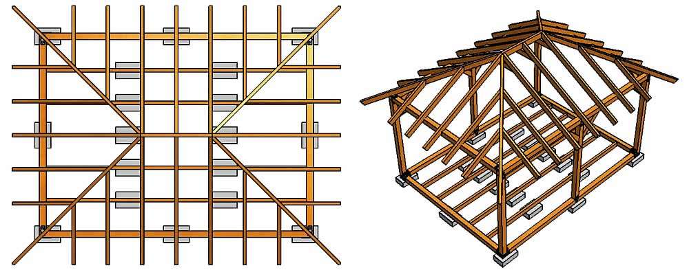 Дополнительные усиливающие элементы, такие как подкосы и ригели, позволяют предотвратить провисание системы под тяжестью кровли.
