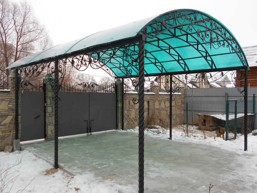 Пользуются популярностью и кованые сооружения. Такие постройки относятся к дорогостоящим, и для их возведения требуются специалисты. Чтобы сделать качественную конструкцию нужно учесть размеры машины, установку каркасной системы и материалы покрытия. При сочетании всех этих характеристик можно соорудить качественную постройку.