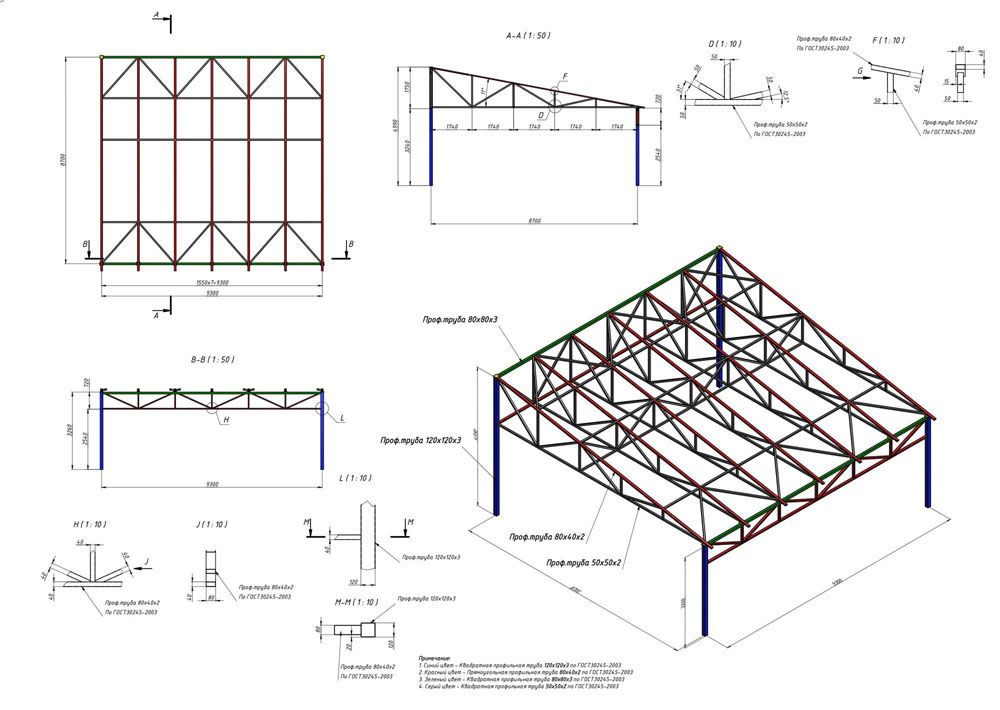 Чтобы самостоятельно соорудить металлические конструкции, необходимы чертежи. Установку можно выполнить из металлических уголков, швеллеров и труб.