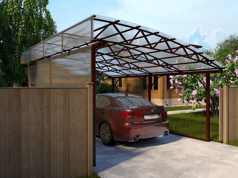 Навесы для автомобилей: фото варианта для двух транспортных средств