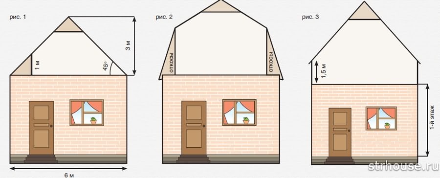 Зависимость высоты потолка мансарды и угла скатов крыши