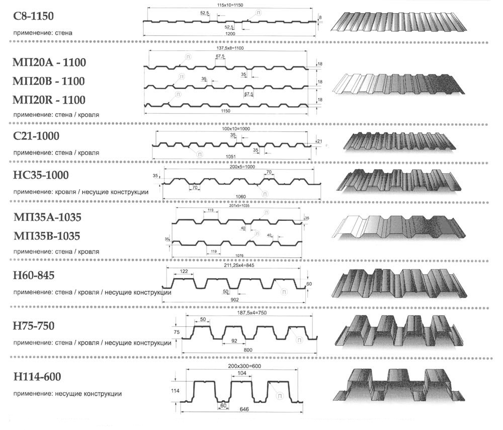 размеры листа, ширина и толщина металлопрофиля, профлиста, инструкции на фото и видео