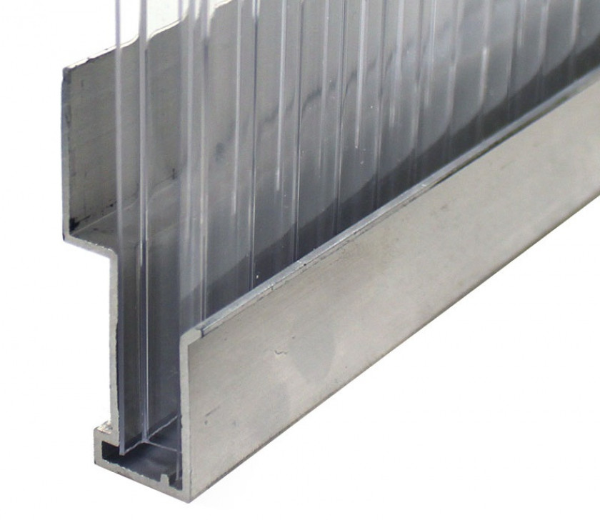 Преимущество профилей из алюминия в более высокой прочности самого материала и прекрасной герметичности, поскольку в конструкции такого крепления используются специальные резиновые уплотнители. Стандартные алюминиевые профили изготавливаются с фиксированной длиной 6000 мм, под разную толщину поликарбоната, 6-25 мм.
