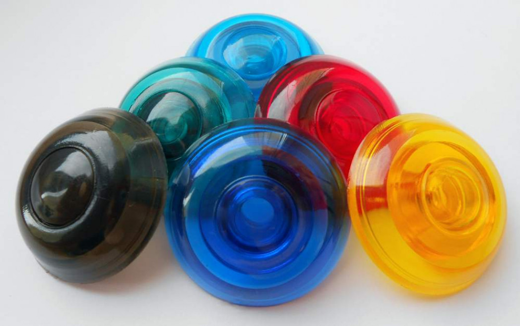 - пластиковой выпуклой шайбы с широкой ножкой, которая утапливается в отверстие в поликарбонате;
