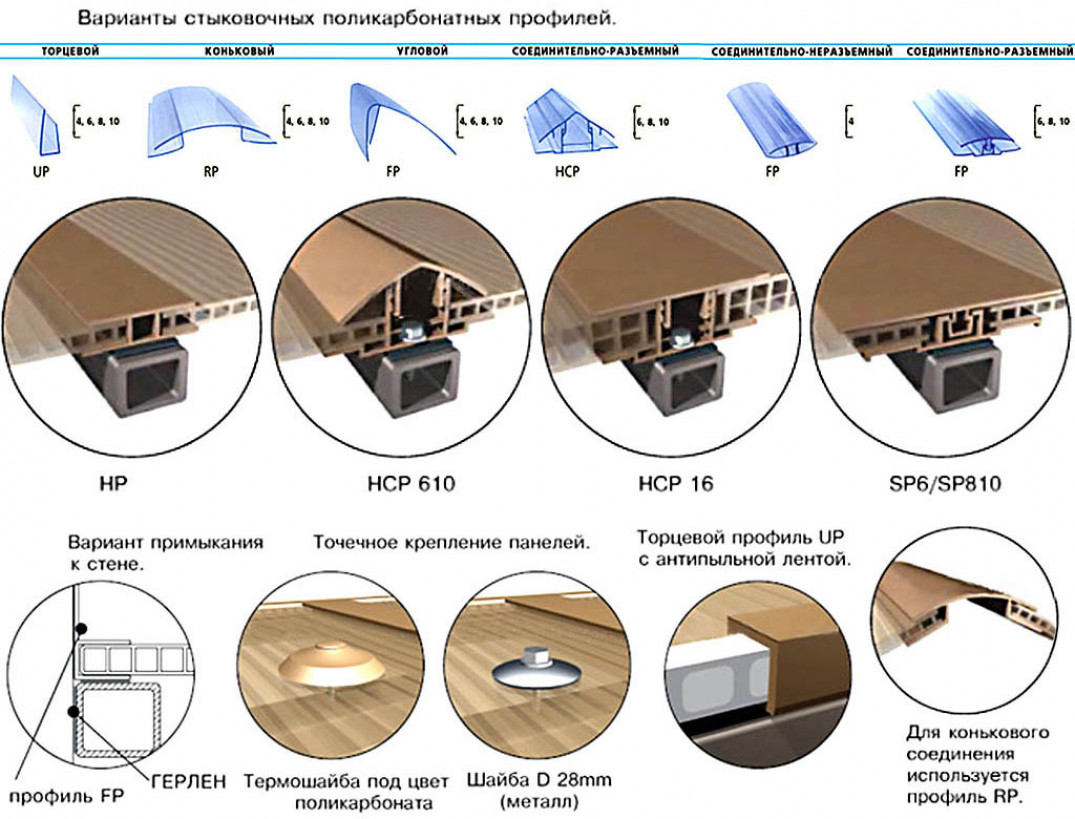 Виды крепления поликарбоната