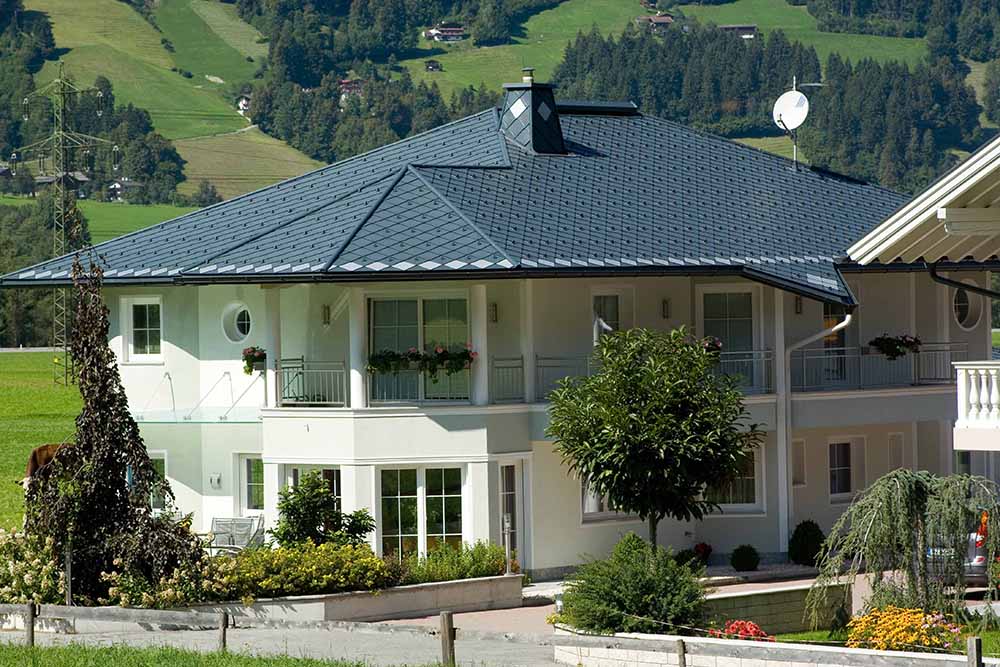 Кровли, покрытые «чешуей» из меди, титан-цинка, алюминия или оцинкованного железа по своему конструктиву напоминают керамическую черепицу за исключением того, что монтируются, как правило, на сплошную, а не шаговую обрешетку. Так как замок металлической чешуи упрощен (используется простое фальцевание), по показателю водонепроницаемости это покрытие уступает большинству моделей керамической черепицы, но превосходит сланец. Для этого материала на крышах с малым уклоном (менее 25º) также рекомендуется использовать в конструкции кровельного пирога дублирующий водоотводящий слой (нижнюю кровлю).