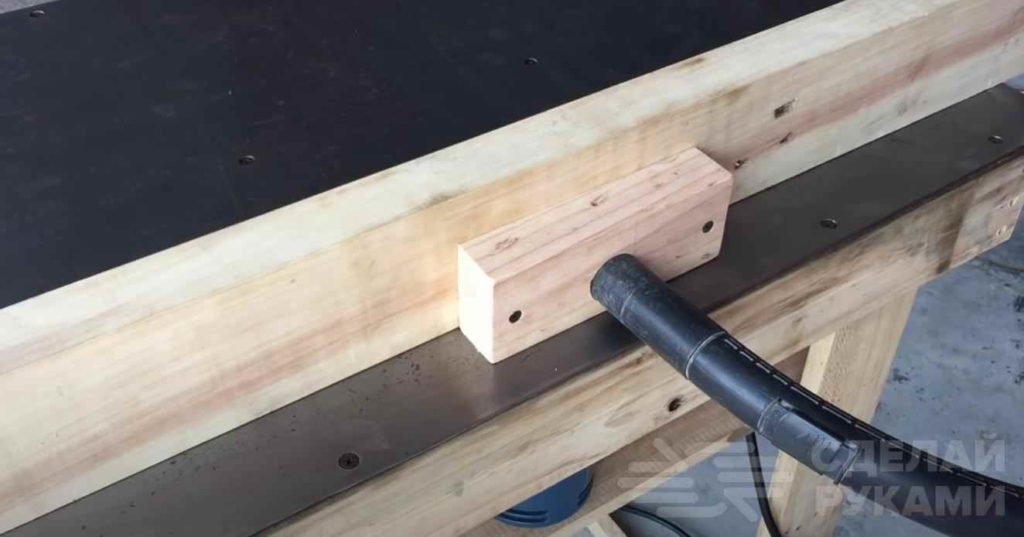 Он служит направляющей для детали, поэтому должен быть ровным. Можно сделать упор с Т-пазом, в который вставляются прижимные устройства и другие приспособления, облегчающие работу.