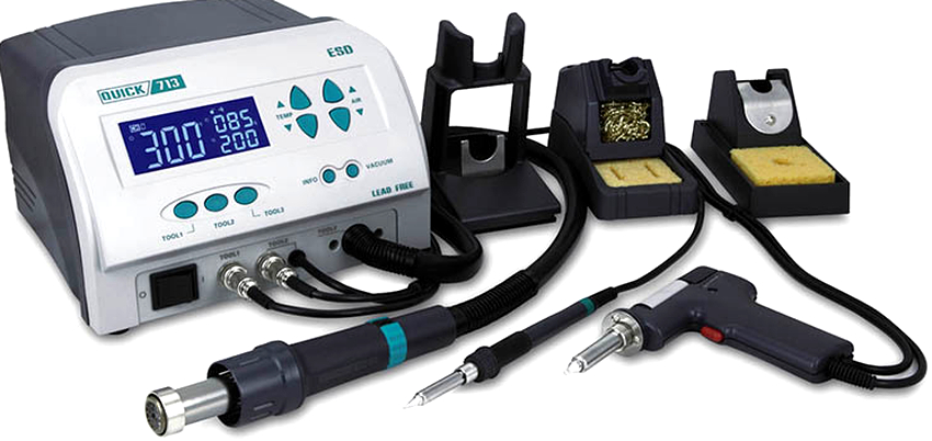 Незаменимая вещь для тех, кто профессионально занимается ремонтом и обслуживанием электроники и радиотехники. Станция прошла заводские испытания и полностью соответствует всем стандартам безопасности и экологичности. Мощность – 750 Вт. Диапазон рабочих температур – от 200 до 400 градусов Цельсия. При прекращении работ все нагревающиеся элементы автоматически охлаждаются до безопасной температуры, что не приведет к пожару. Цена – от 9000 рублей.